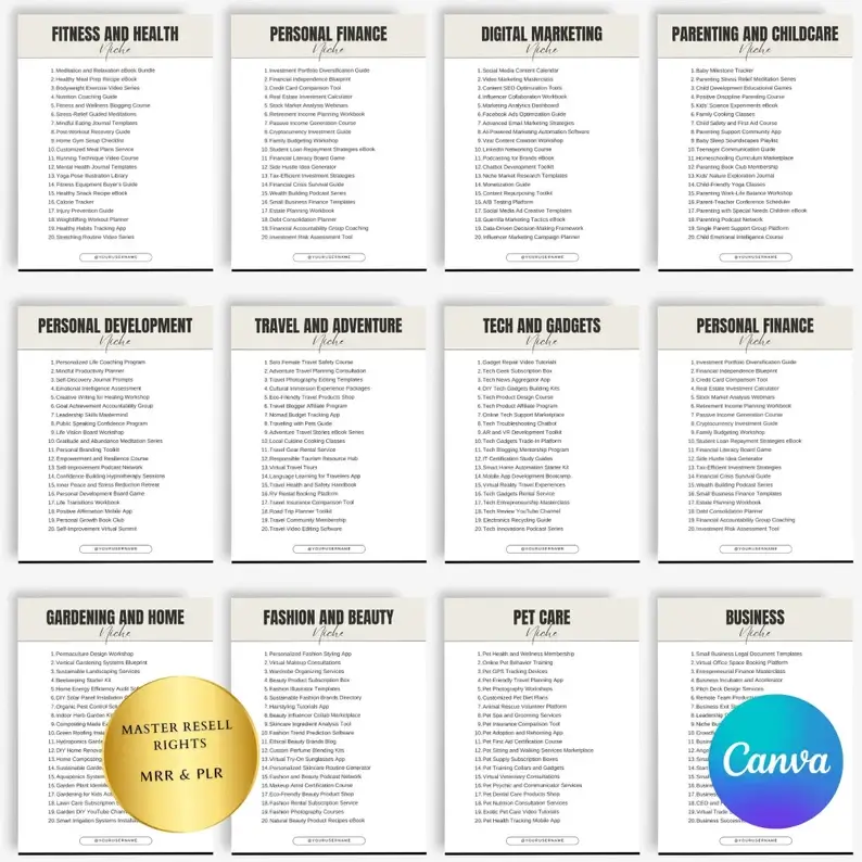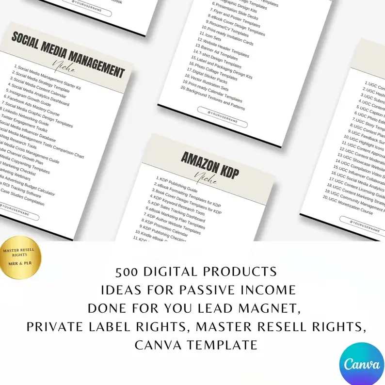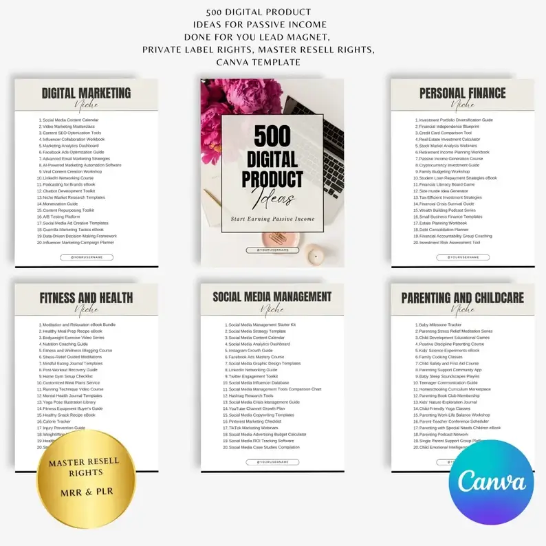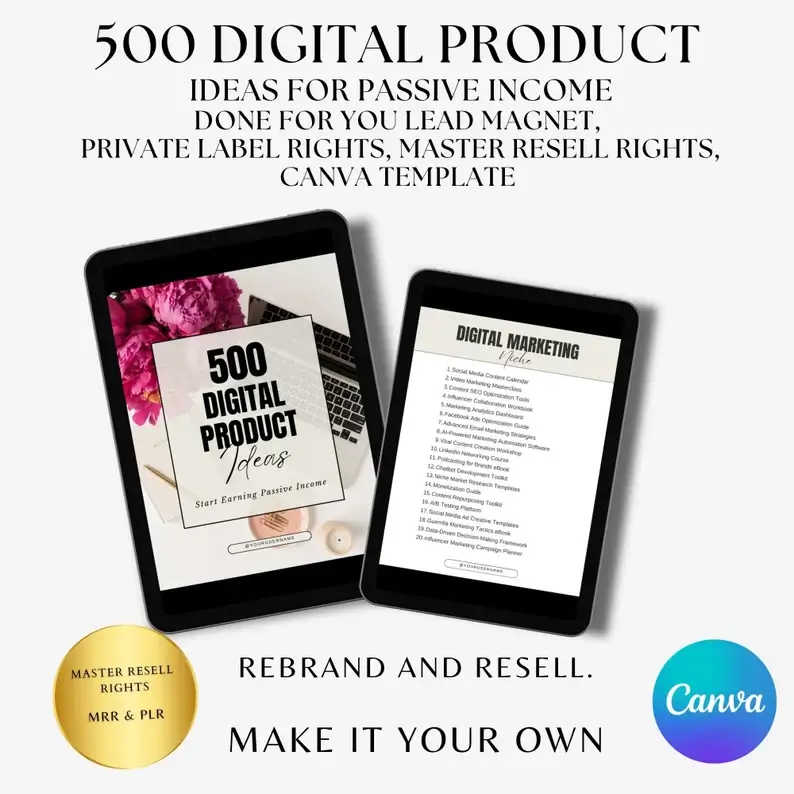 💡 500 Digital Product Ideas with MRR & PLR | Canva Templates for Passive Income 💸