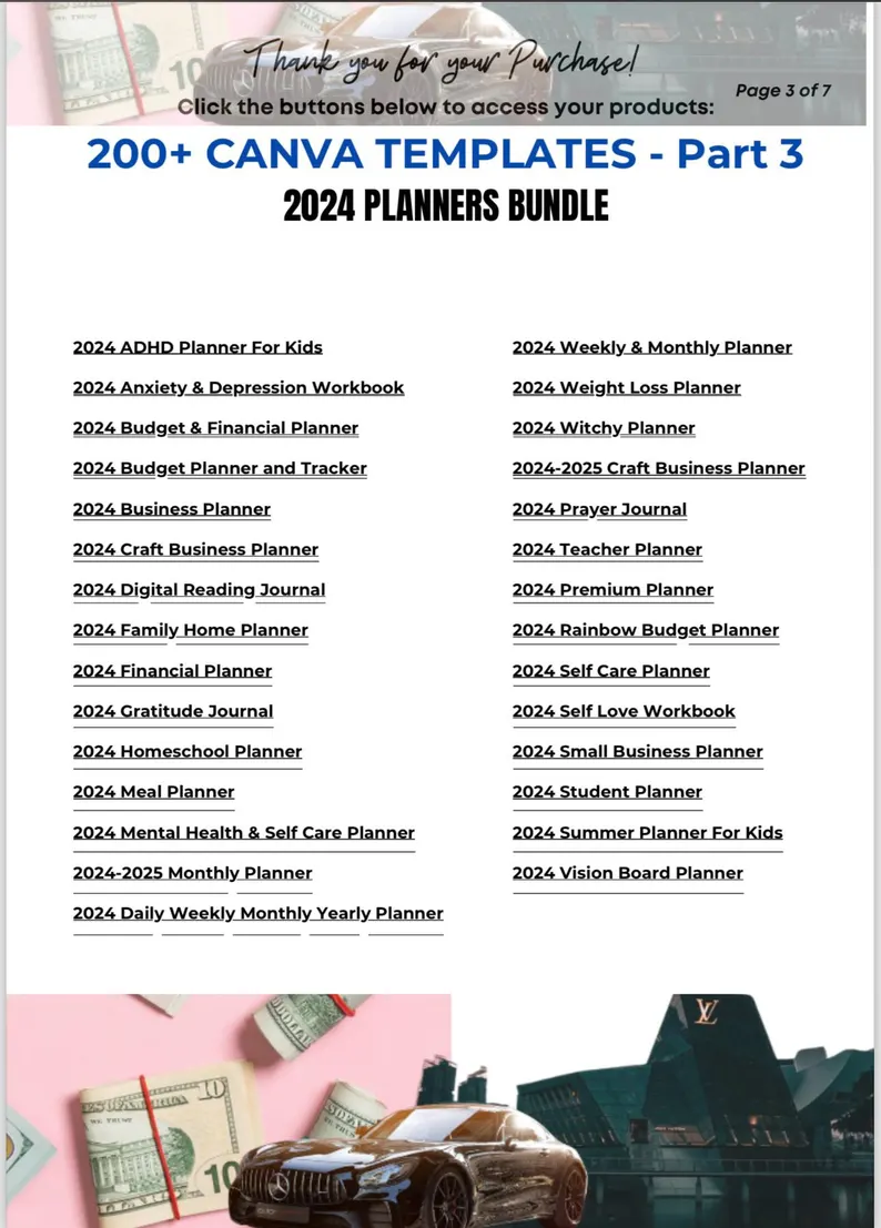 Once purchased, you’ll receive an instant download link to access everything via Canva. Start editing and building your own brand of planners within minutes!