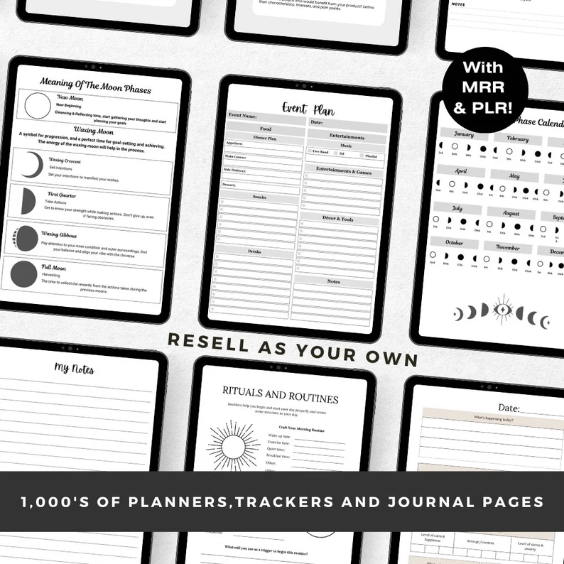 To-do lists, Password Logs, Mood & Habit Trackers, Journal Pages, Meal Planners, and more!