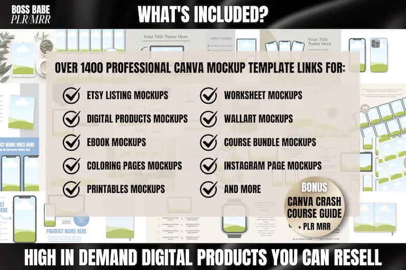 Say goodbye to overwhelm and hello to your new best-seller PLR digital product — the 1,400+ Canva Mockup Templates Bundle with full PLR + MRR license. Sell them, rebrand them, or use them to make your own listings look irresistible. 💸