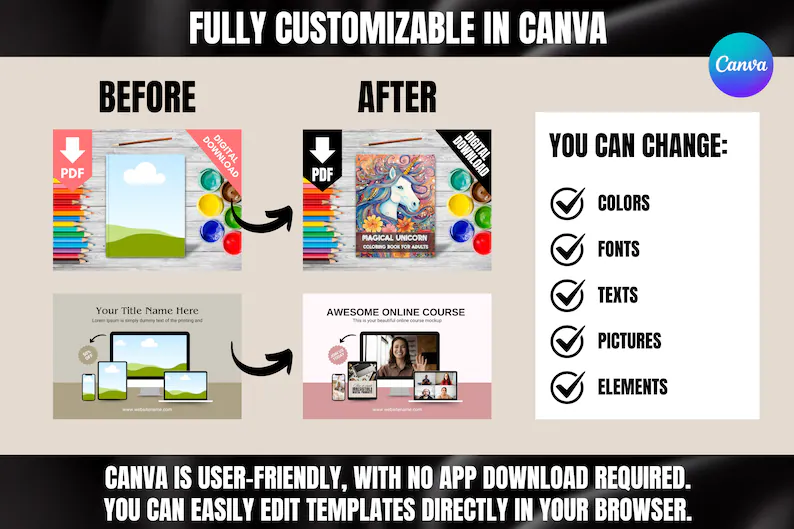 ✅ 100% Editable: Fully customizable in Canva – just plug in your product screenshots or branding.