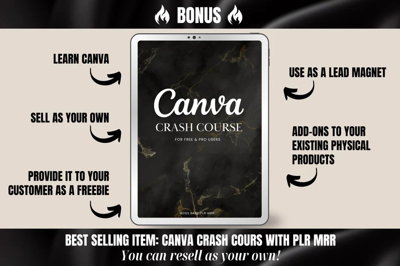 ✅ FREE BONUS: You’ll get The Canva Crash Course (also PLR) — another best-seller you can resell, too!
